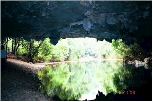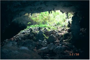 Inside the cave looking out. |
