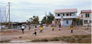 The "scrabble area" behind the main building.