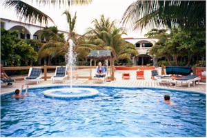 The Sunbreeze hotel across from the landing strip where we stayed in San Pedro. | The pool at the hotel.
