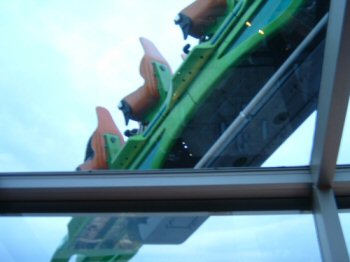 Stratosphere - X-Scream My RC rating ***** Good Thrill. You slide out over the edge of the tower 108 stories high, then it tips down. Other roller coaster pictures and comments: Busch Gardens, Disney, 6 Flags, Universal Islands of Adventure.