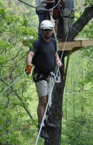 Wire bridges !!!??!!! Then you zip down. The last Screaming Eagle zip is 2400 ft. It has one of the world's highest timber pole towers.