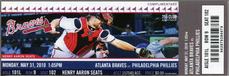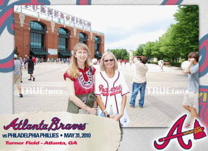 My friend Carolyn got complementary tickets from coach Bobby Cox. Nine rows behind home plate!