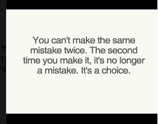 You can't make the same mistake twice. The second time you make it, itis no longer a mistake. It's a choice.