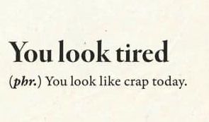 You look tired (phr.) You look like crap today.